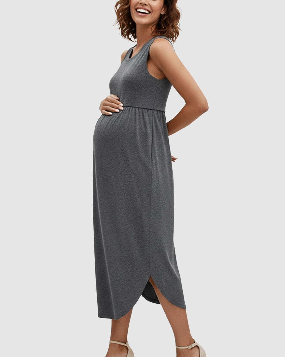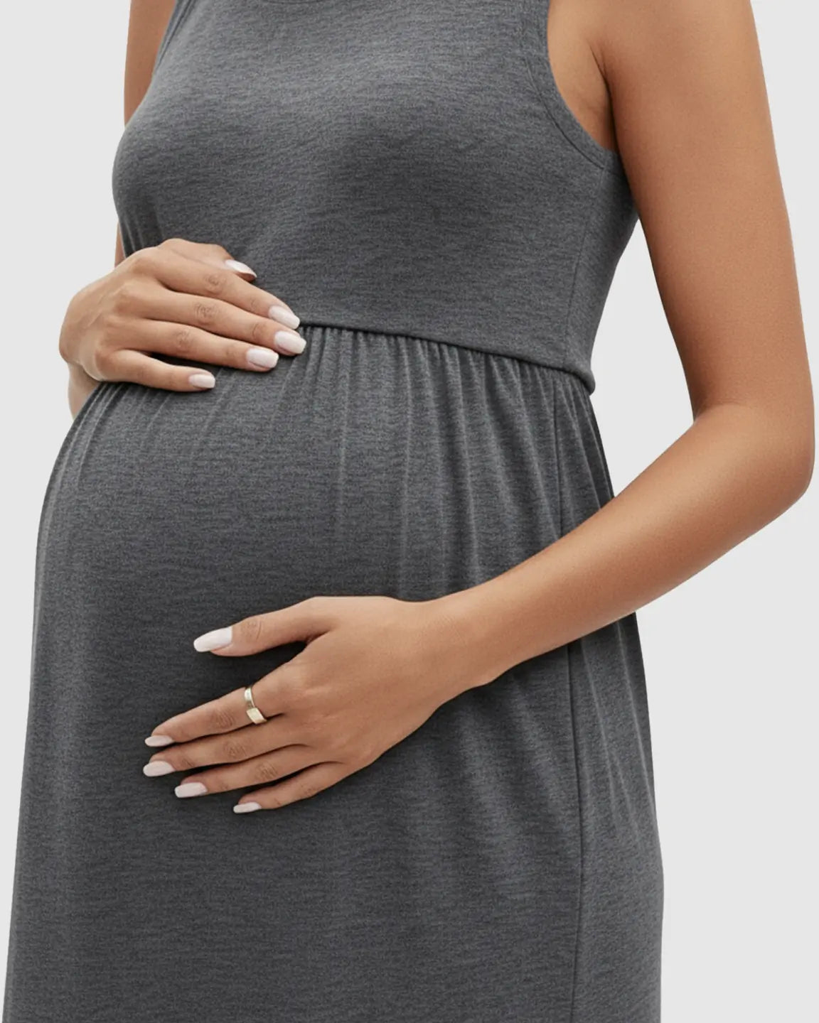 Sleeveless Gathered-Waist Maternity Midi Dress