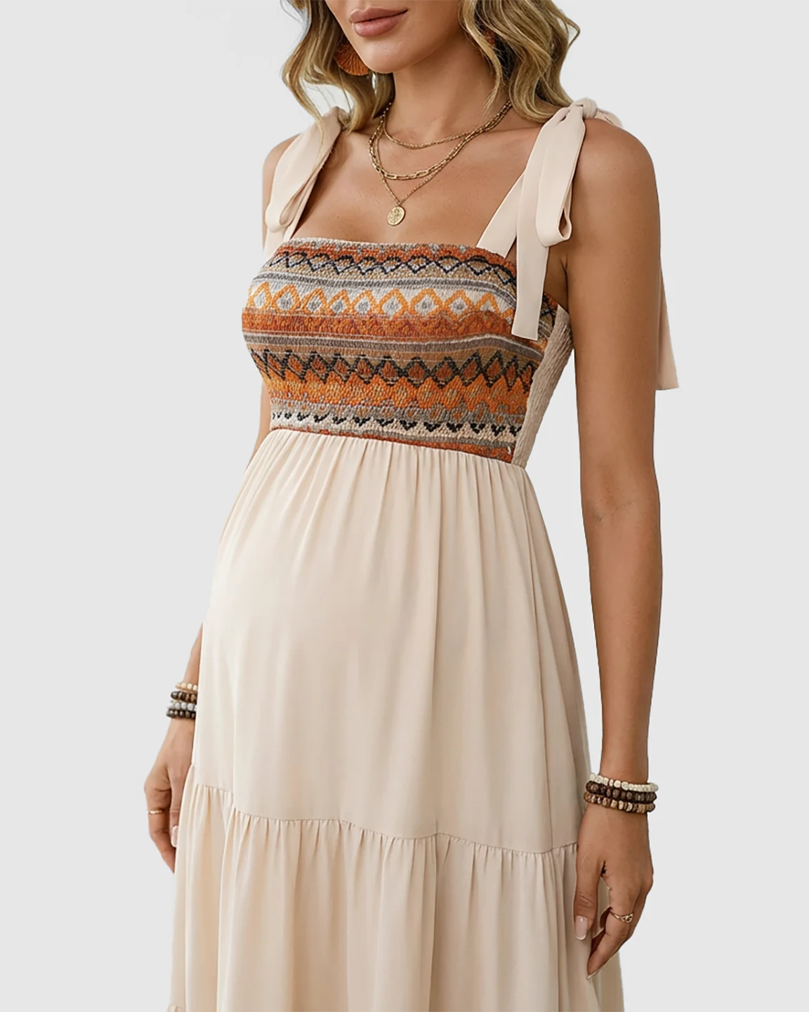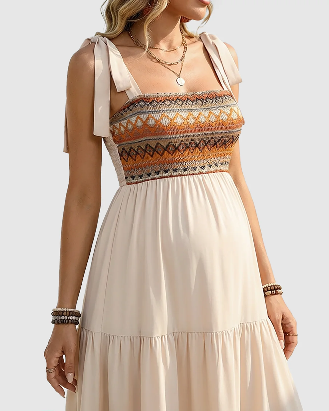 A dreamy blend of Boho Pregnancy Dress, Tie Shoulder Midi, and Ethnic Smocked Dress energy, all wrapped into one breezy favorite.
