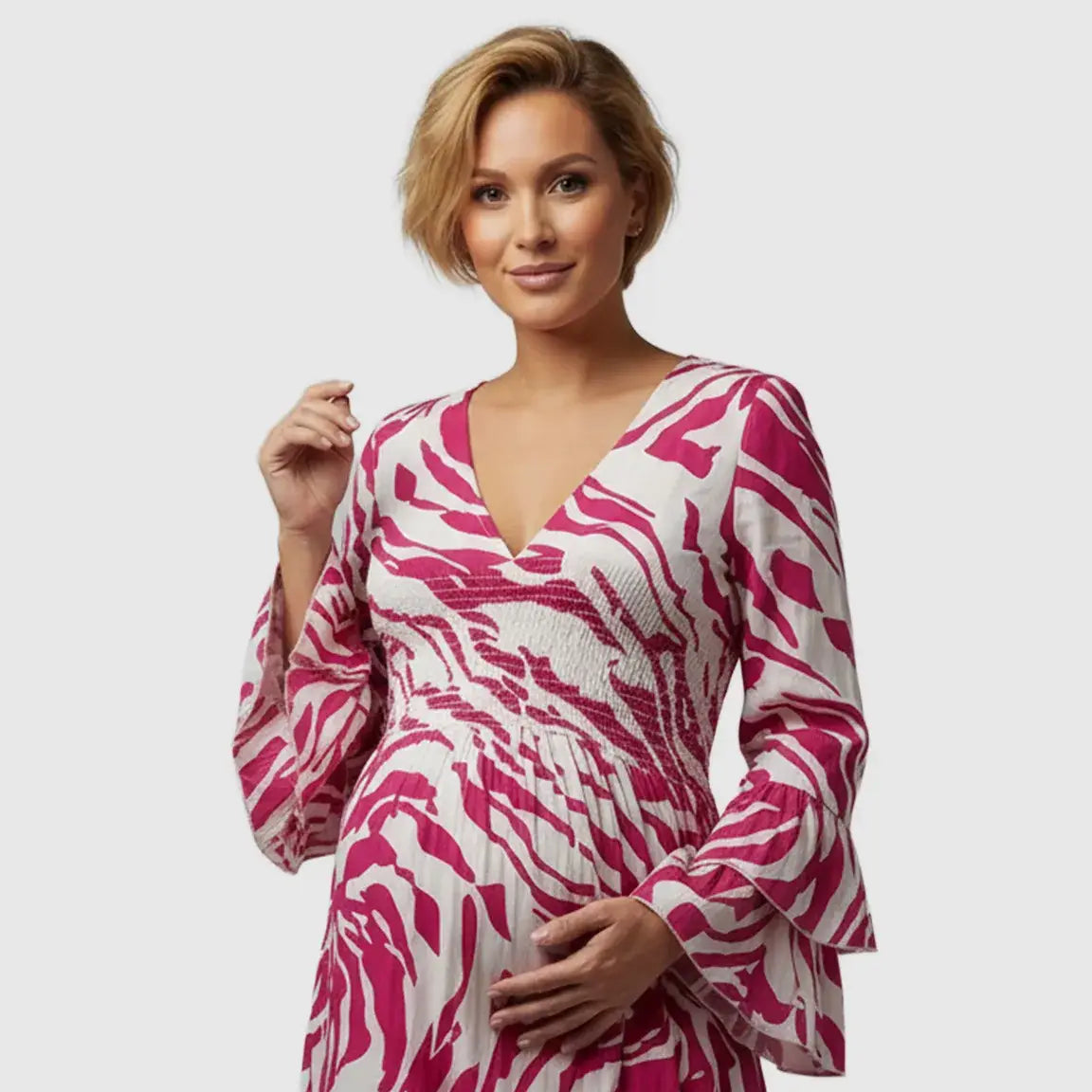 Smocked Waist Boho Maternity Maxi Dress
