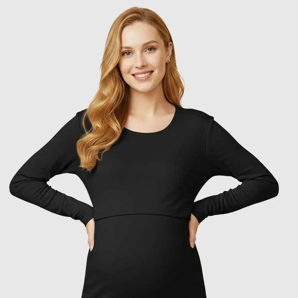 This Nursing Access Thermal Underwear Set wraps you in comfort from pregnancy to postpartum, giving you the softness and flexibility your changing body deserves. Made from 100% breathable cotton, it stretches gently without squeezing and keeps you warm through cooler months. With a discreet nursing panel for quick, easy feeds, it blends everyday practicality with the comforting warmth every mom needs during pregnancy, nursing, and beyond.