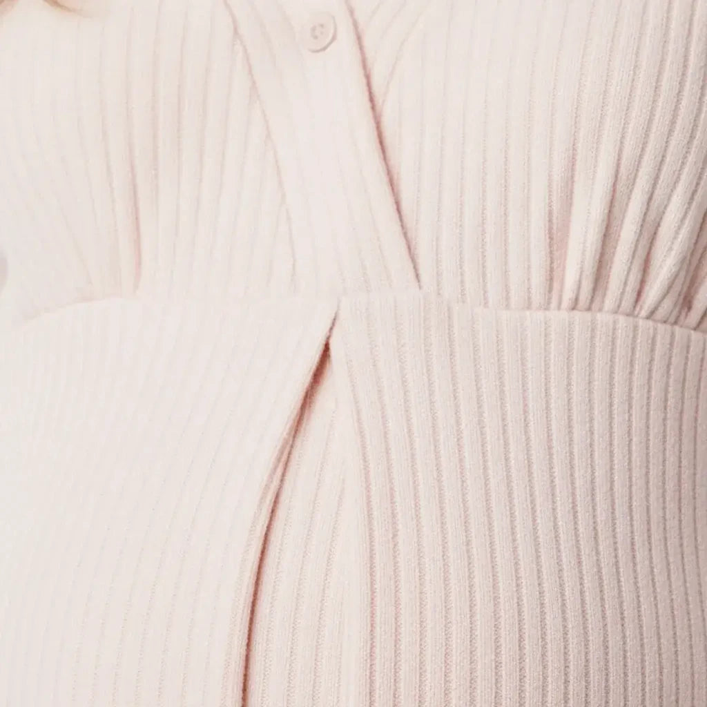 This Soft Ribbed Knit V-Neck Nursing Pajama Set is designed to move with you through pregnancy, nursing, and postpartum. The breathable ribbed knit hugs gently without clinging, giving you that “super comfortable, fits-my-bump” feel moms rave about. With friendly nursing access and a relaxed long-sleeve silhouette, it keeps you cozy through late-night feeds, slow mornings, and everything in between.