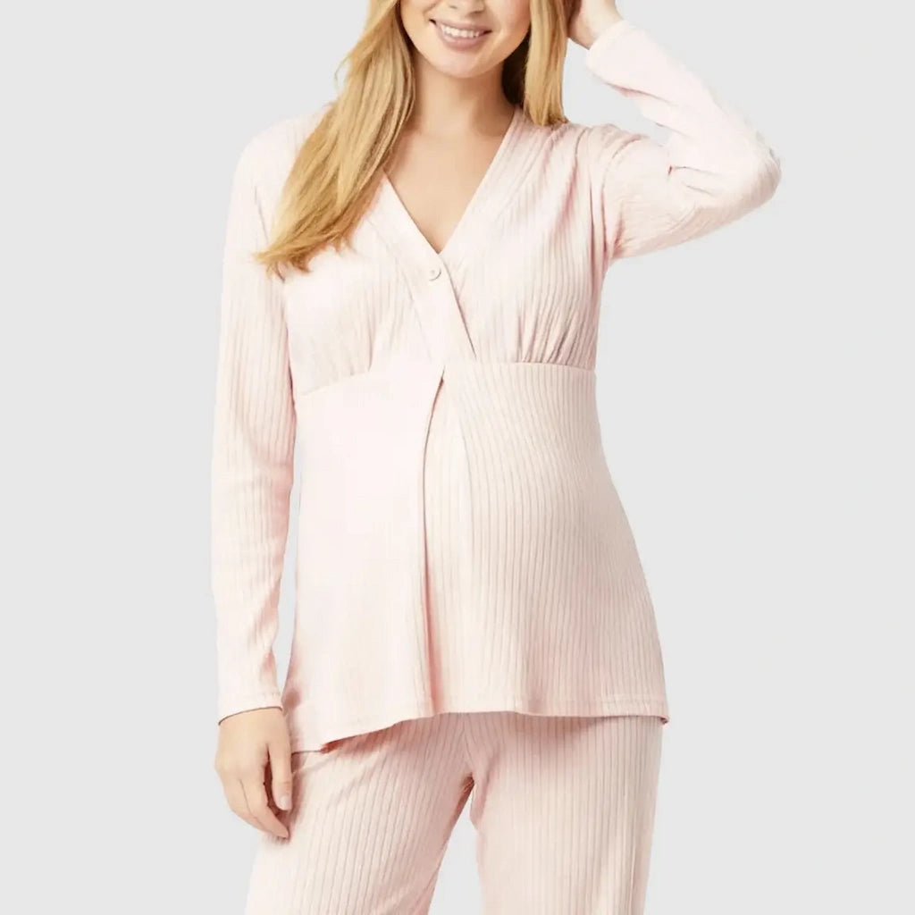 Soft Ribbed Knit V-Neck Nursing Pajama Set