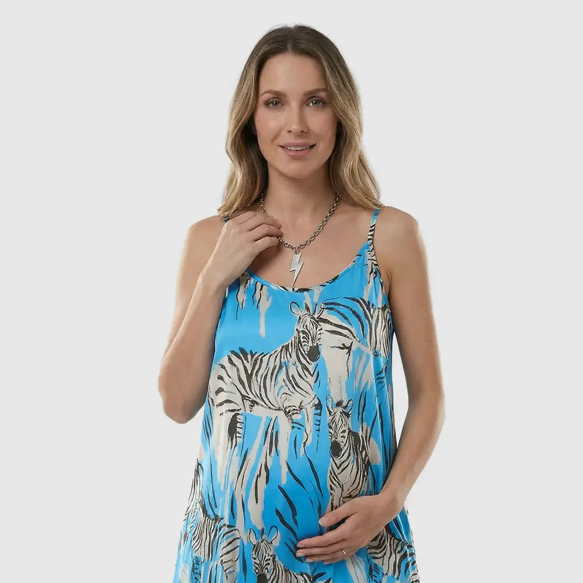 Spaghetti-Strap Animal-Print Maternity Maxi Dress