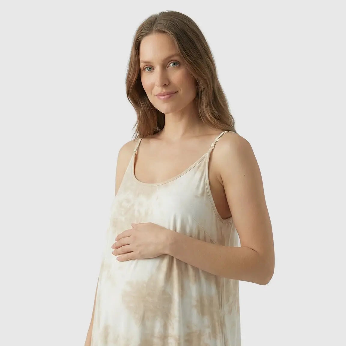 This tie-dye maternity maxi dress is soft, breathable, and designed to glide effortlessly over your growing bump without feeling heavy or clingy. The relaxed silhouette, airy spaghetti straps, and subtle tie-dye pattern make it your go-to for warm days, errands, lounging, and all the in-between moments. Finished with functional side pockets, it’s made for real-life comfort from pre-pregnancy through all maternity stages.