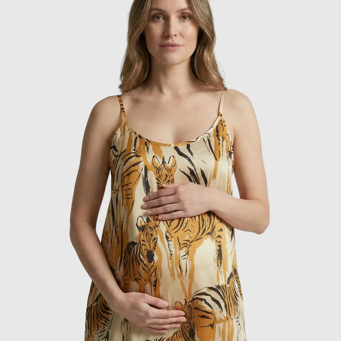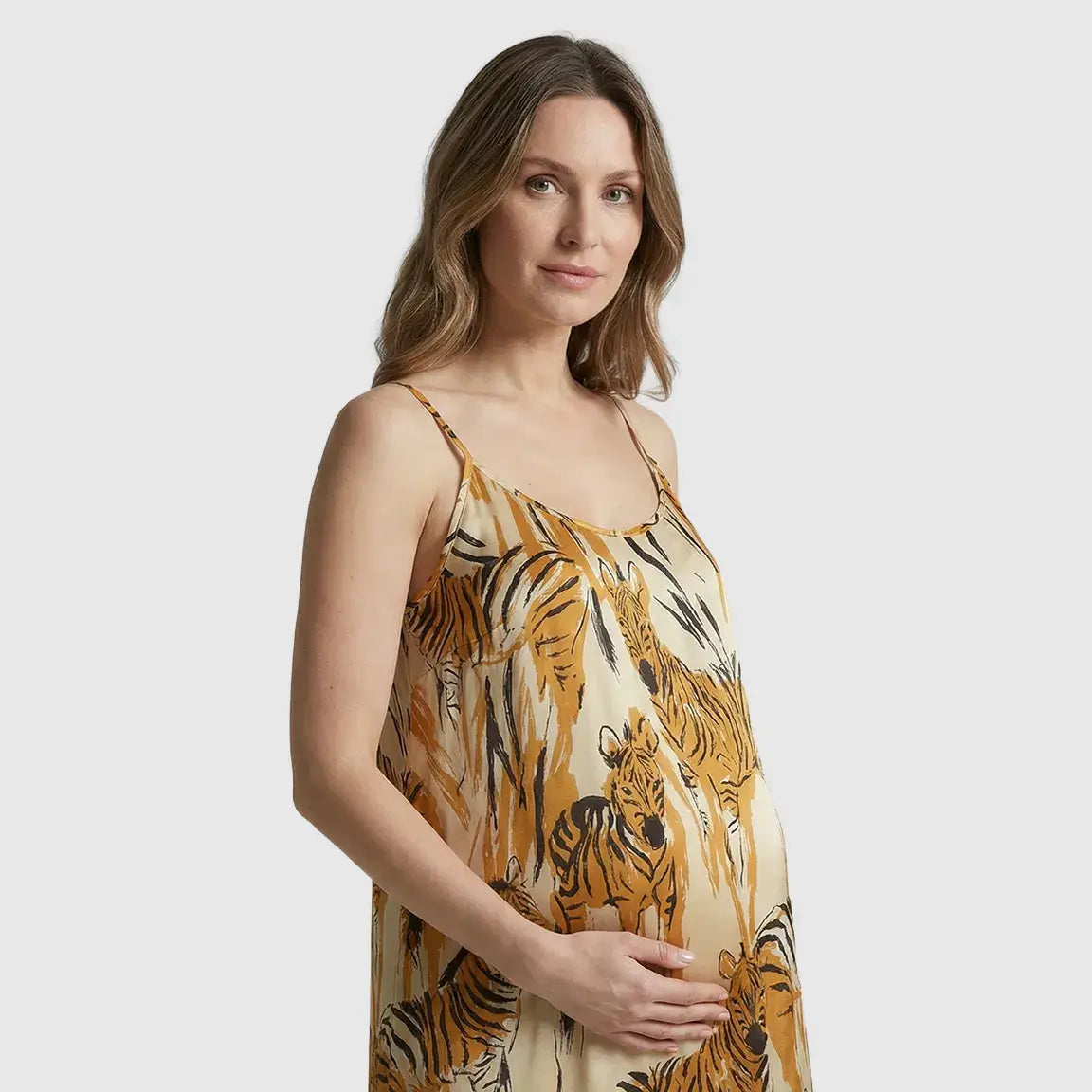 Spaghetti-Strap Tiger-Print Maternity Maxi Dress