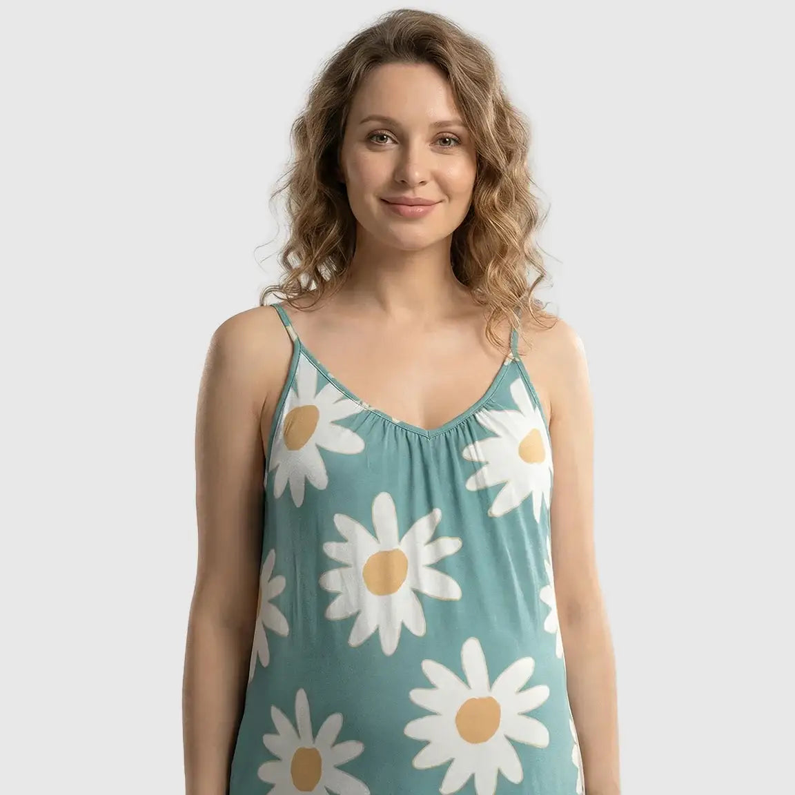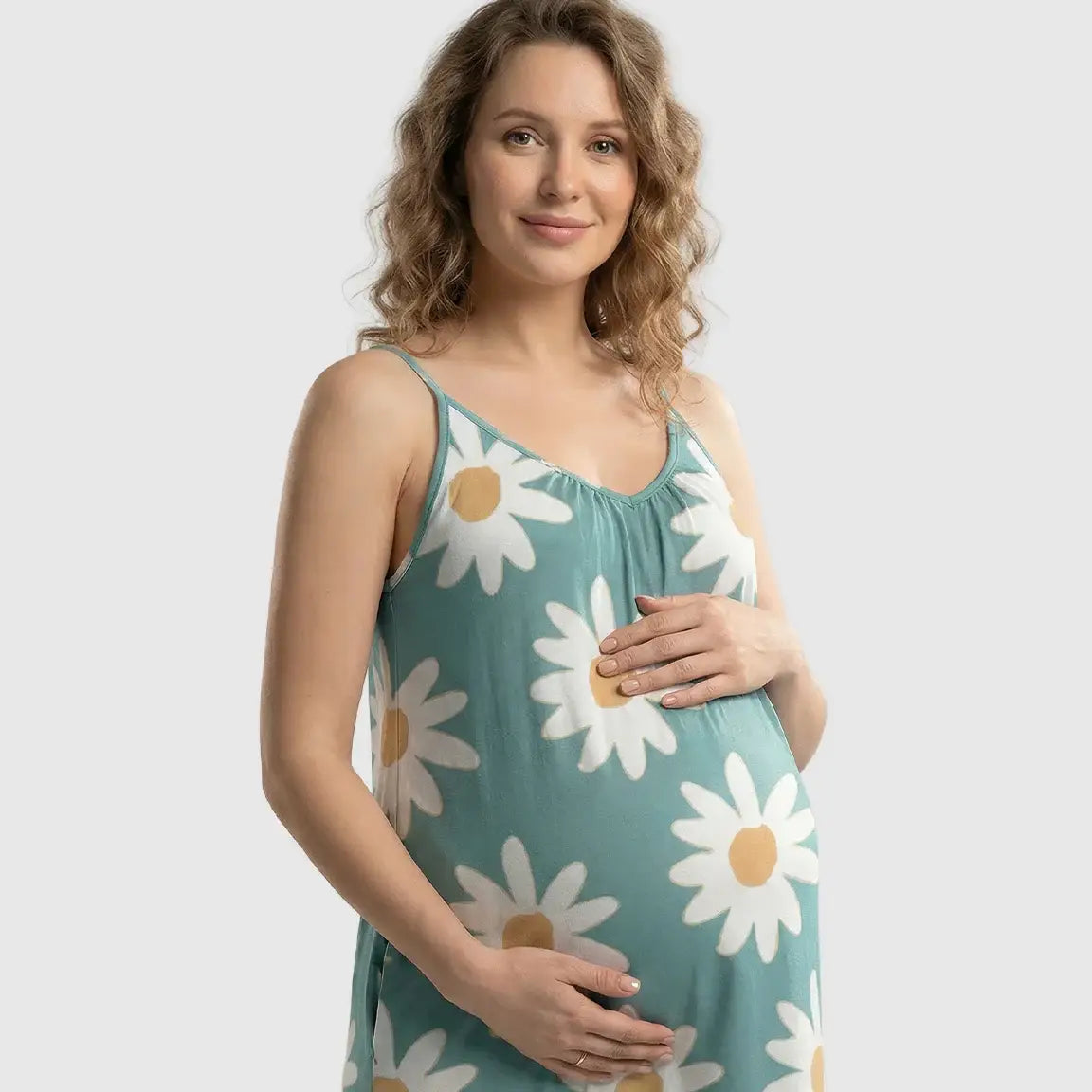 Spaghetti Straps Daisy Print Maternity Maxi Dress