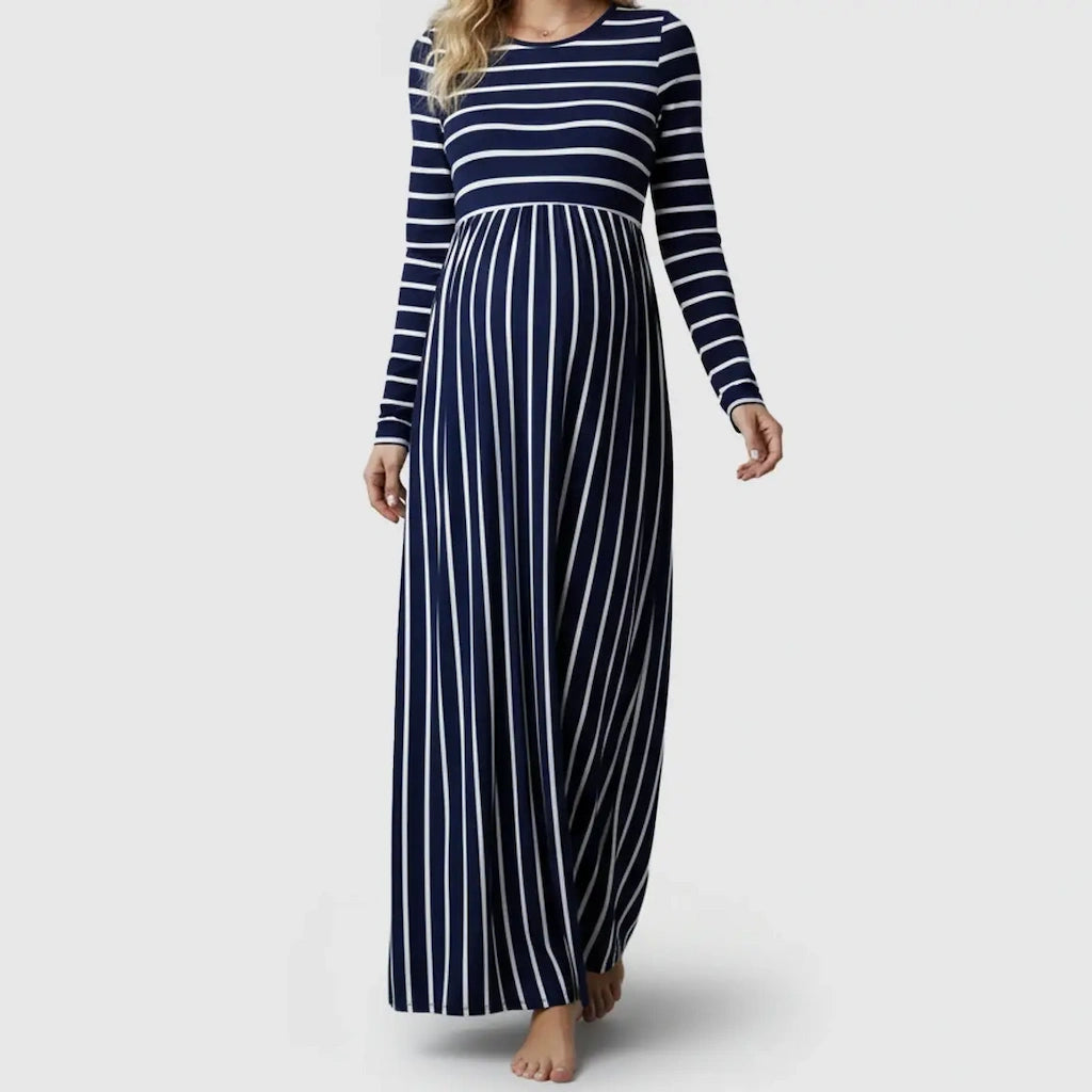 Striped Long Sleeve Elegant Floor-Length Maternity Maxi Dress