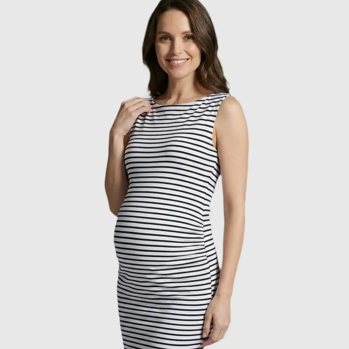 Striped Sleeveless Bodycon Maternity Midi Dress
