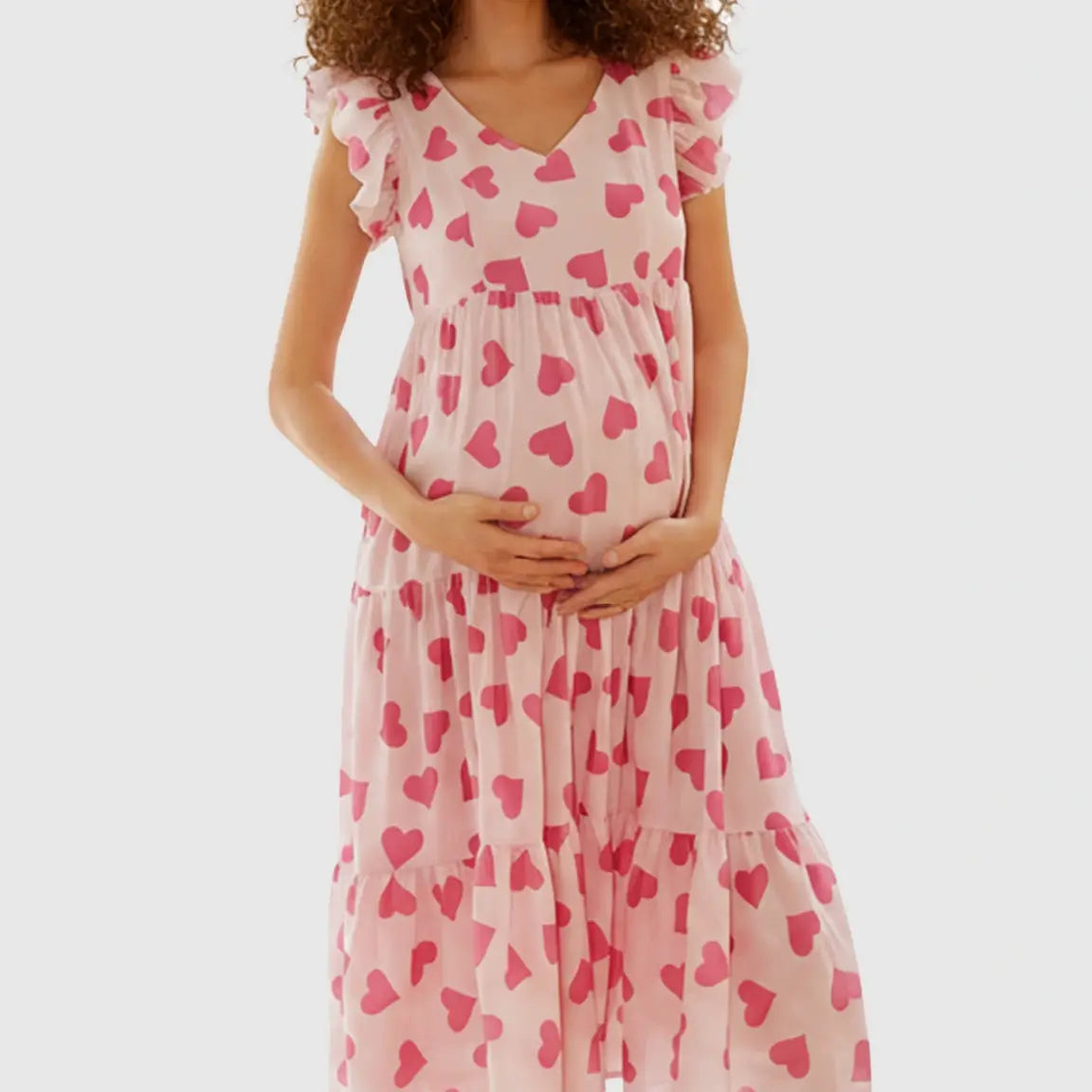 Tiered Skirt Heart Print Maternity Midi Dress