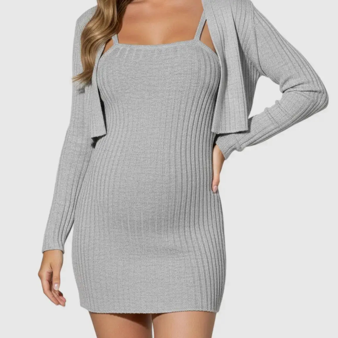 Meet the Mini Two-Piece Mini Maternity Dress Set, designed for pregnancy and breastfeeding with comfort and style in mind. Featuring a strappy mini dress and a loose long-sleeved coat, the set offers seamless adaptability to your growing belly while keeping you elegant for formal occasions or casual outings. Perfect for weddings, daily wear, and social events, this versatile set ensures you feel confident and cute at every stage of maternity.