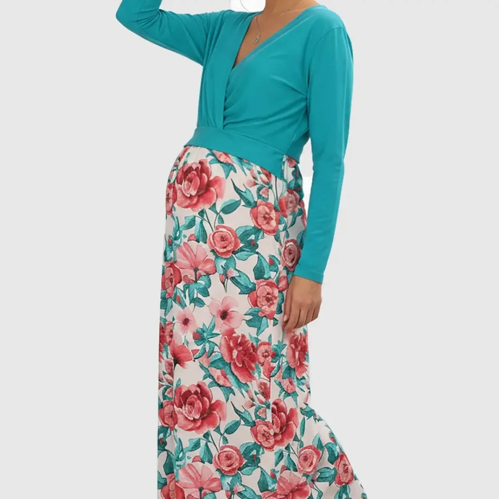 V-Neck Floral Print Faux Two-Piece Maternity Maxi Dress