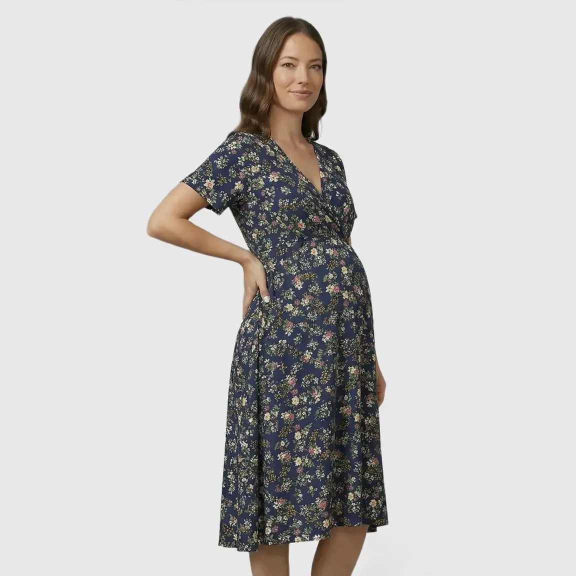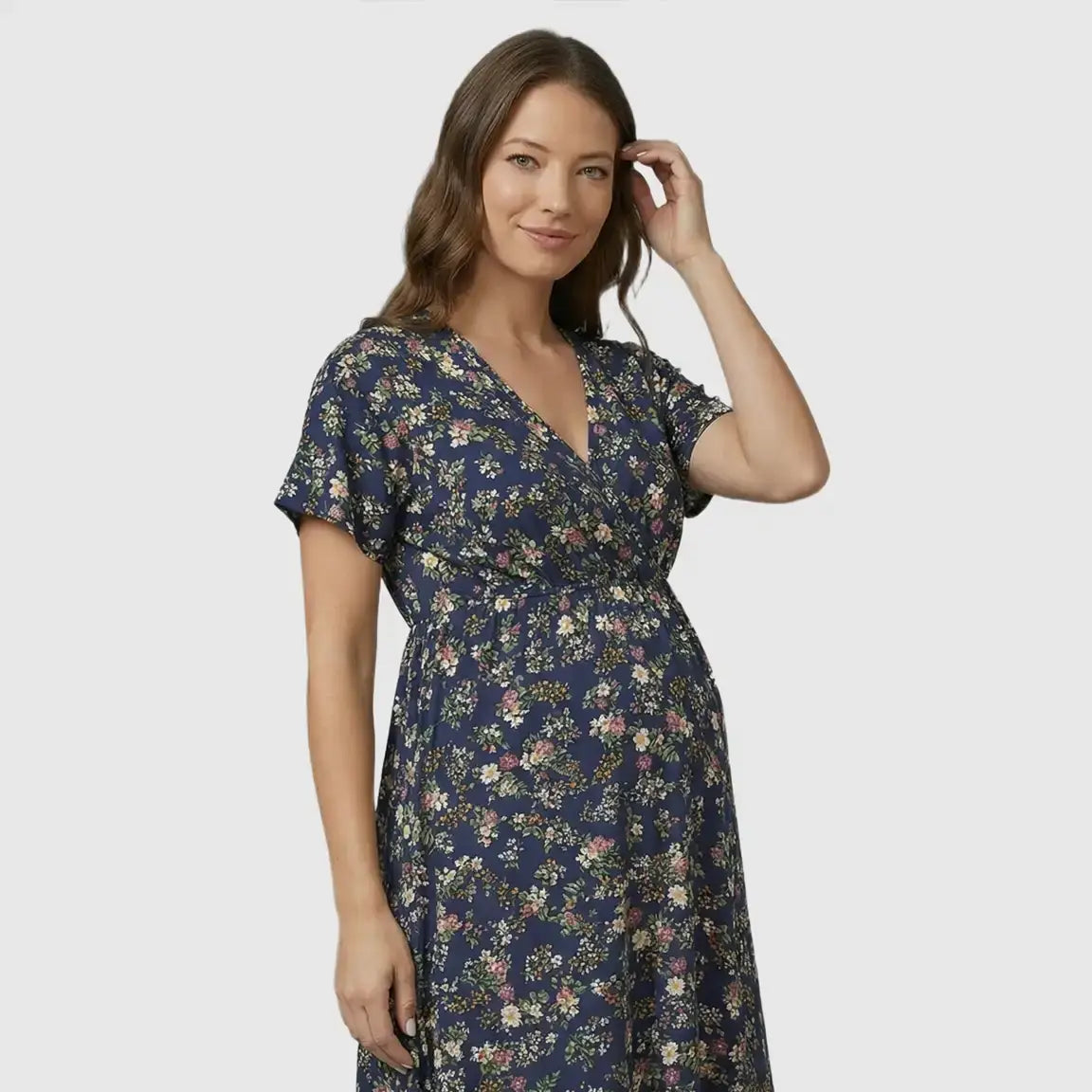 Floral print and breezy movement make it your go-to summer maternity dress.
