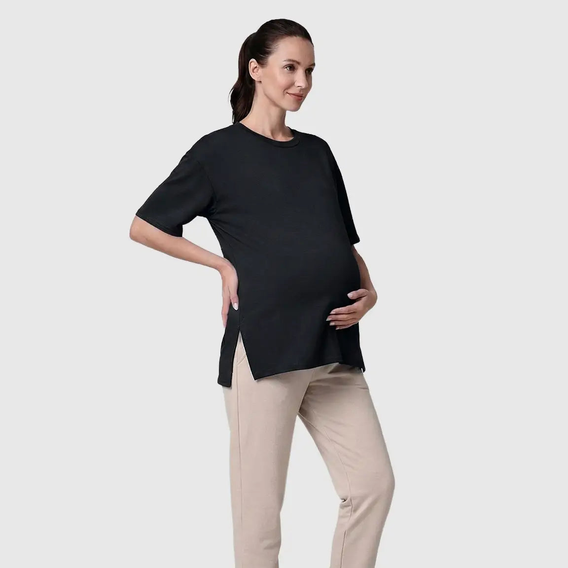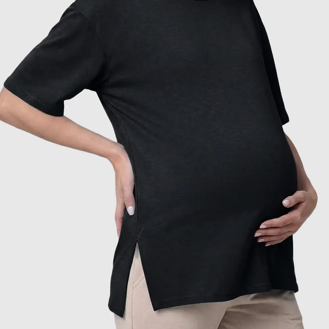 Zipper-Slits Casual Maternity Nursing T-Shirt